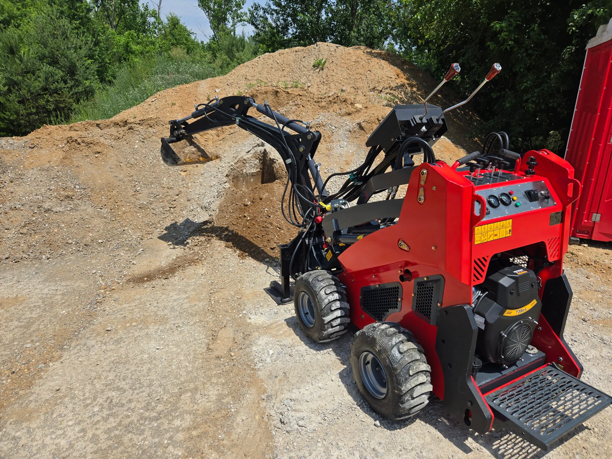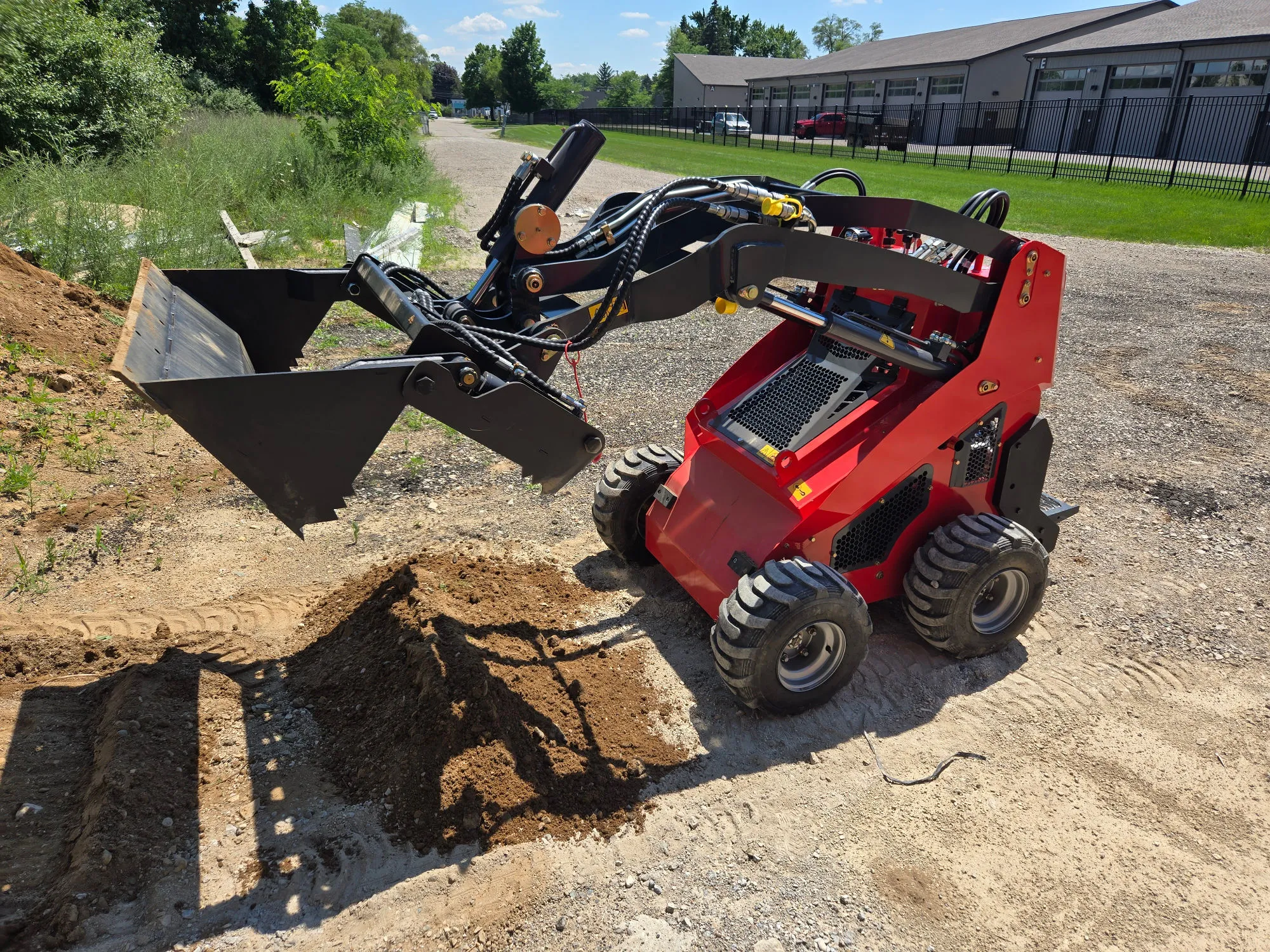 - Compact power for tight spaces — Our mini skid steer fits where bigger machines can’t — perfect for backyards, gates, and tricky job sites.